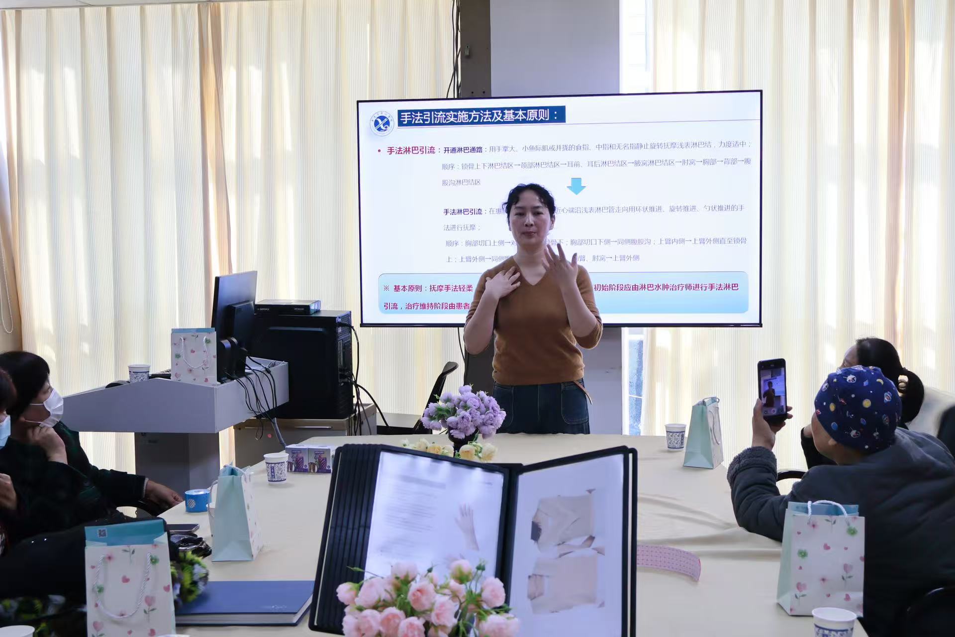 居家手法引流的实操环节,专业老师逐一对患者的手法、力度、路径进行指导,让“抽象的康复知识”变成了“手上能感知的动作”,许多患者当场就掌握了为自己“疏通淋巴”的技巧;