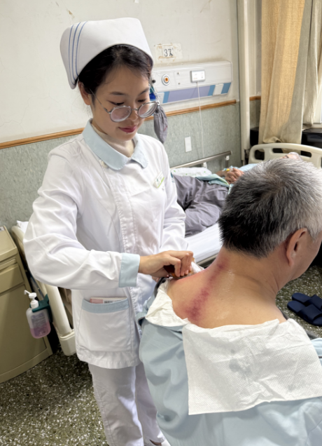 在两个月的沉浸式学习中,我系统学习了中医基础理论、经络学说、辨证施护等核心内容,并重点掌握了六项中医护理适宜技术,包括艾灸、拔罐、刮痧、耳穴压豆、穴位贴敷及中药湿热敷。这每一项操作,看似简单,其背后却蕴含着“天人相应”“阴阳平衡”“经络通调”的深邃中医哲学。