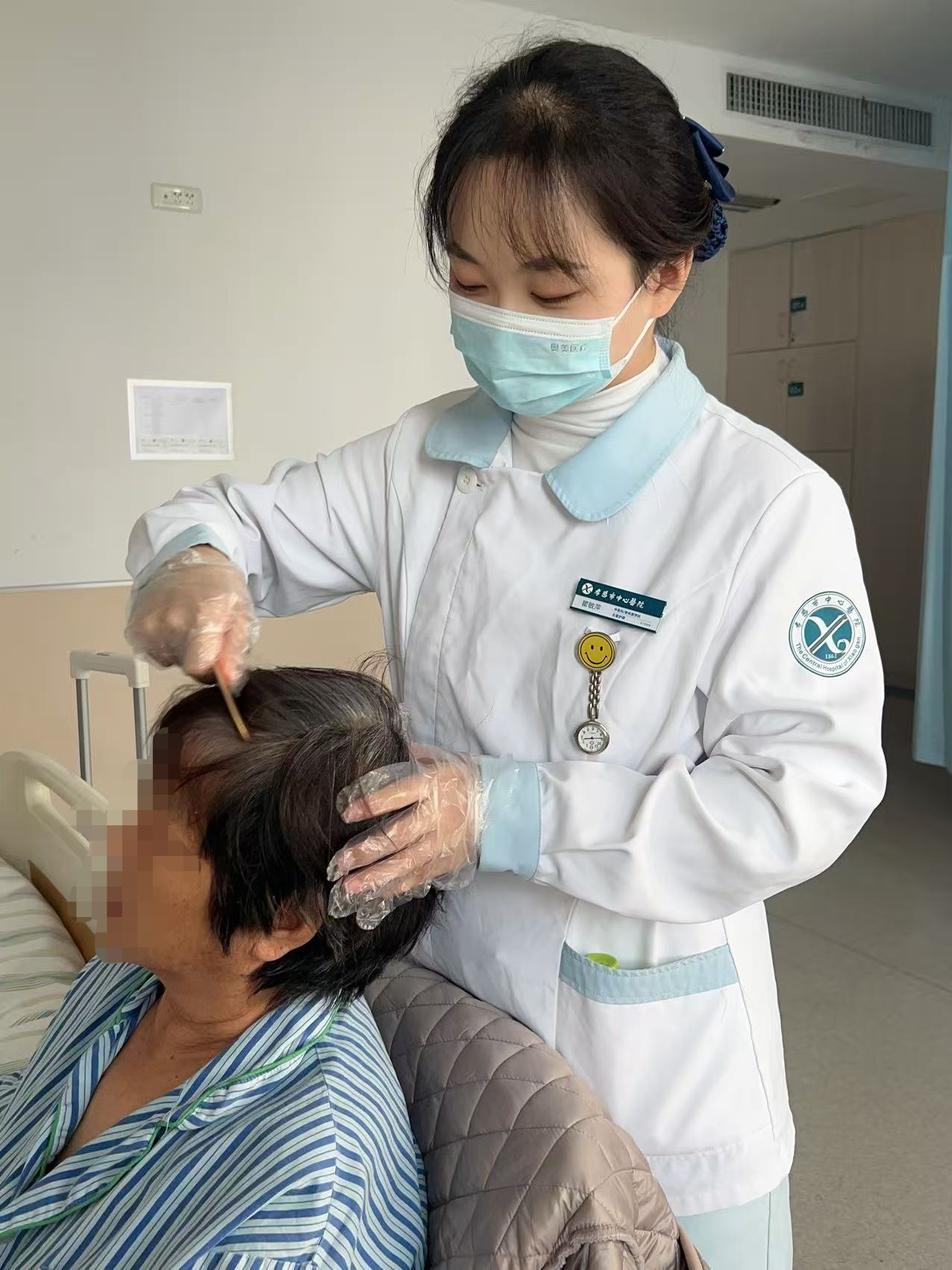 住院期间,陌生的环境让罗婆婆难以适应,睡眠质量大打折扣。瞿敏萍护士通过中医辨证,判断婆婆为“心脾两虚、心神不宁”所致,随即为其开展头部刮痧疏通经络,并配合耳穴贴压调理脏腑功能。轻柔的手法、细致的操作,让罗婆婆在治疗中便感到身心放松。经过调理,她的睡眠障碍明显改善,夜间能安稳入睡。