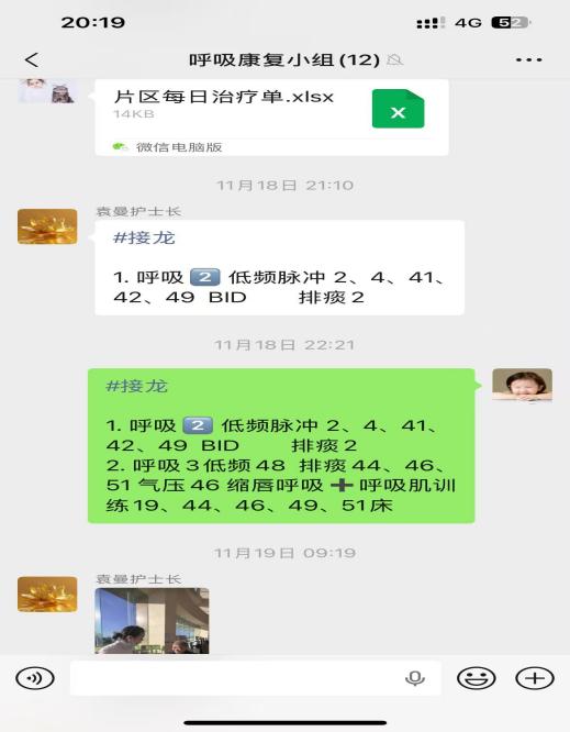 以往,呼吸康复服务多由各科室护士单独开展,存在技术衔接不畅、服务标准不统一等问题。新模式下,三位专科护士打破科室界限,凝聚专业共识,将振动排痰、低频脉冲、气压治疗、呼吸训练、呼吸肌训练、有效咳嗽指导等核心康复技术融为一体,实现全流程、标准化服务。