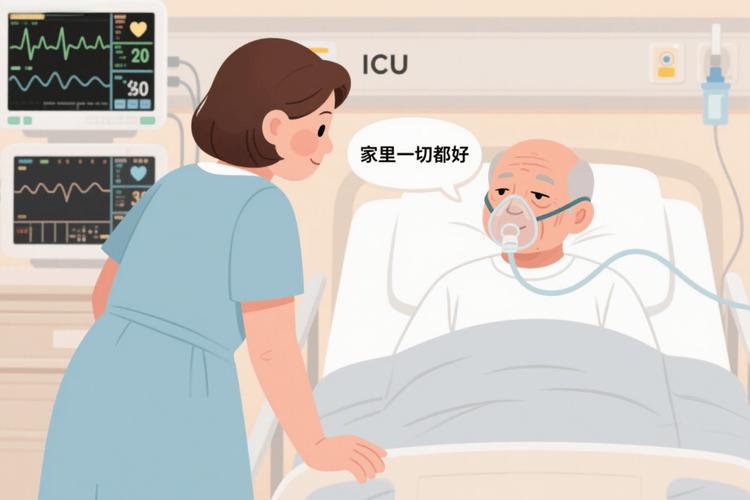 · 即使患者处于镇静或昏迷中,听觉可能依然存在。每天写几句简短的鼓励话语,如“爸爸,我们在等你吃饭”“妈妈,花开了”,由护士读给他听或探视时告知他。