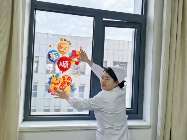 护工与保洁同仁以平凡之举绘就新春暖景。护工协助规整病房、搀扶患者,指导正确卧床起身姿势,携手张贴春联福字,用陪伴消融患者孤独;保洁做好清洁消杀,配合节日装饰,让走廊有春联、病房有福字,营造整洁暖意的住院氛围,助力患者安心康复。
